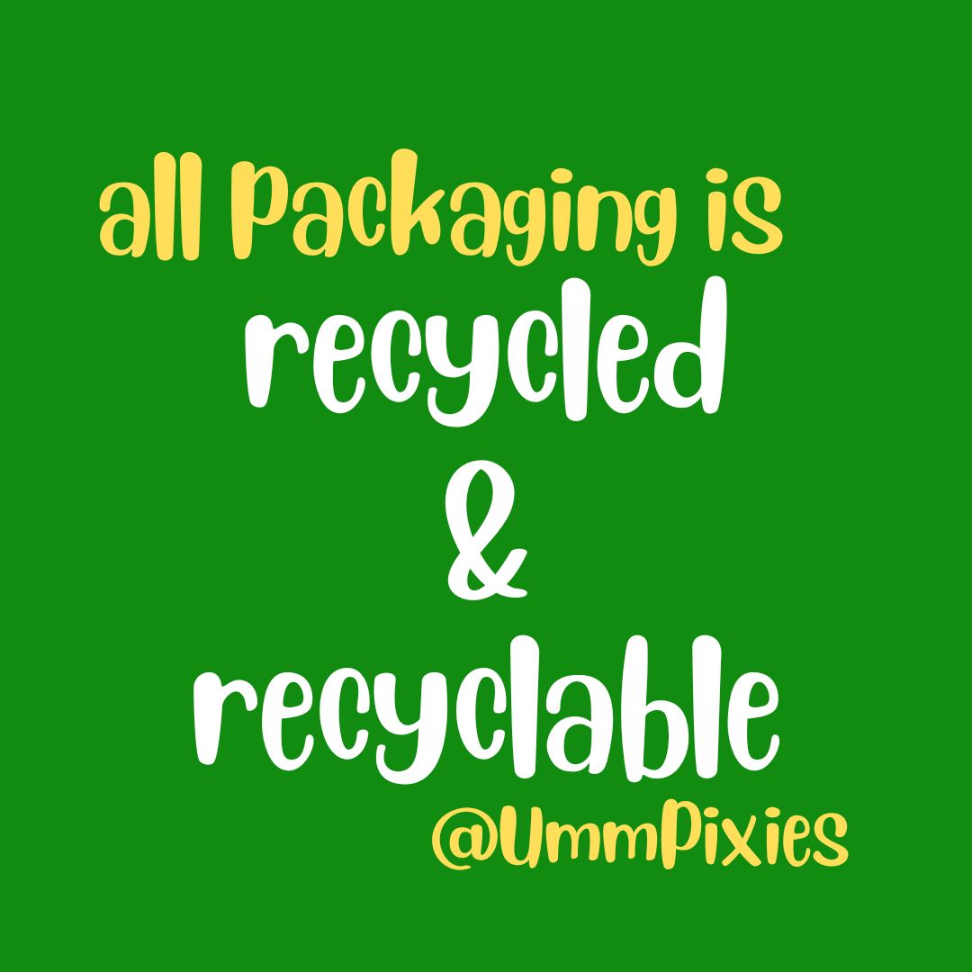 When you open anything from UmmPixies, the gift bags, the belly wraps, the swing tags - they are all made from recycled paper stock and are fully recyclable.