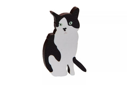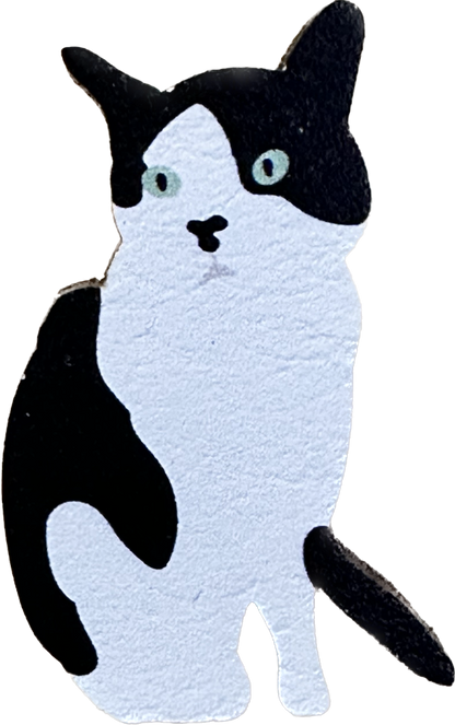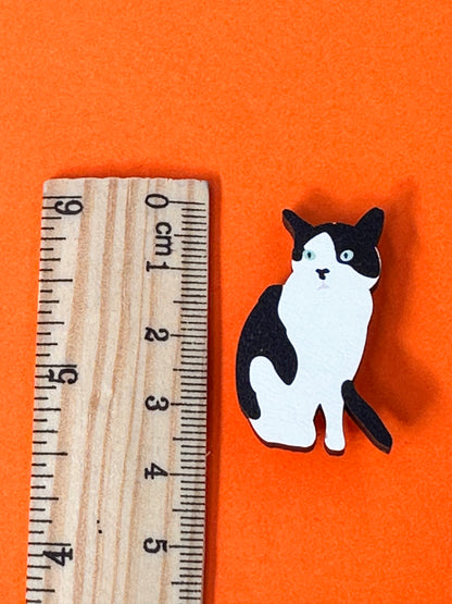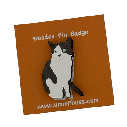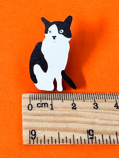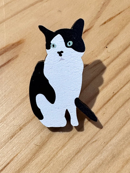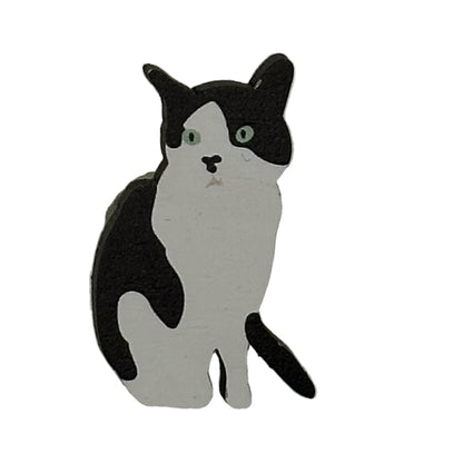 Cat Badge - tuxedo cat wooden pin badge
