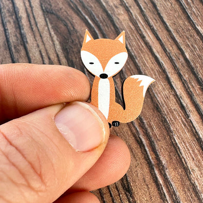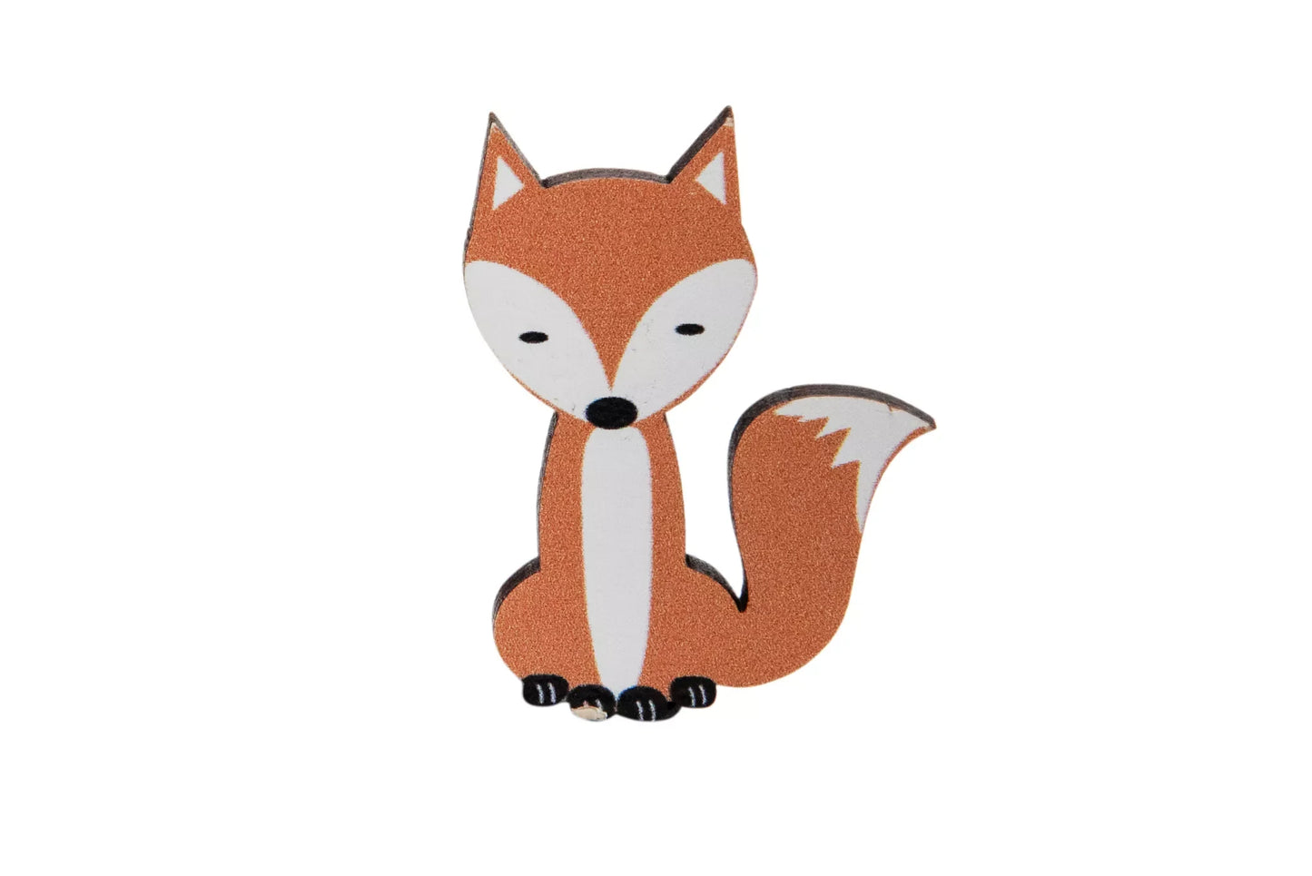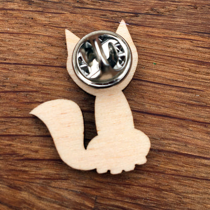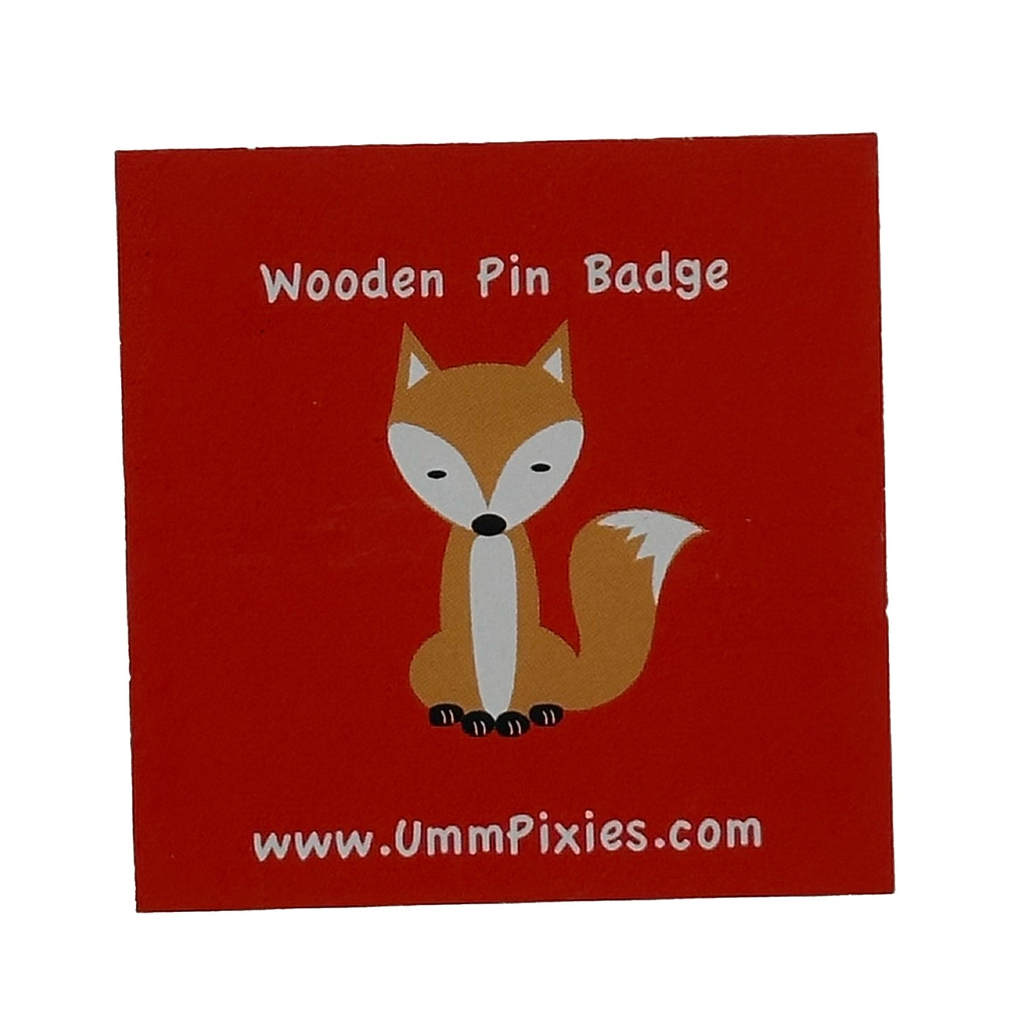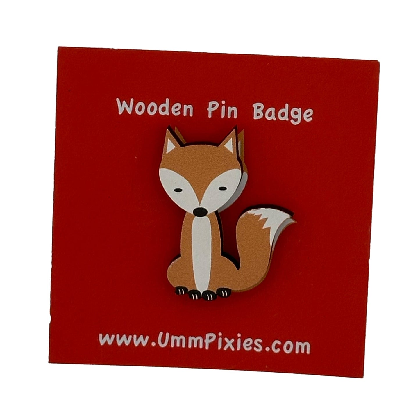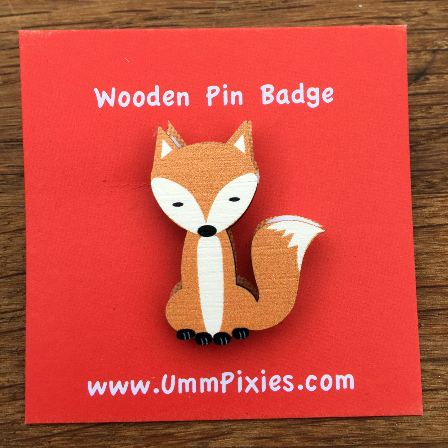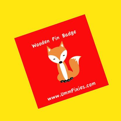 An eco-friendly wooden lapel pin badge featuring my popular sitting fox design.