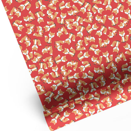 Bright red gift wrap sheets featuring my scattered cheeky foxes.